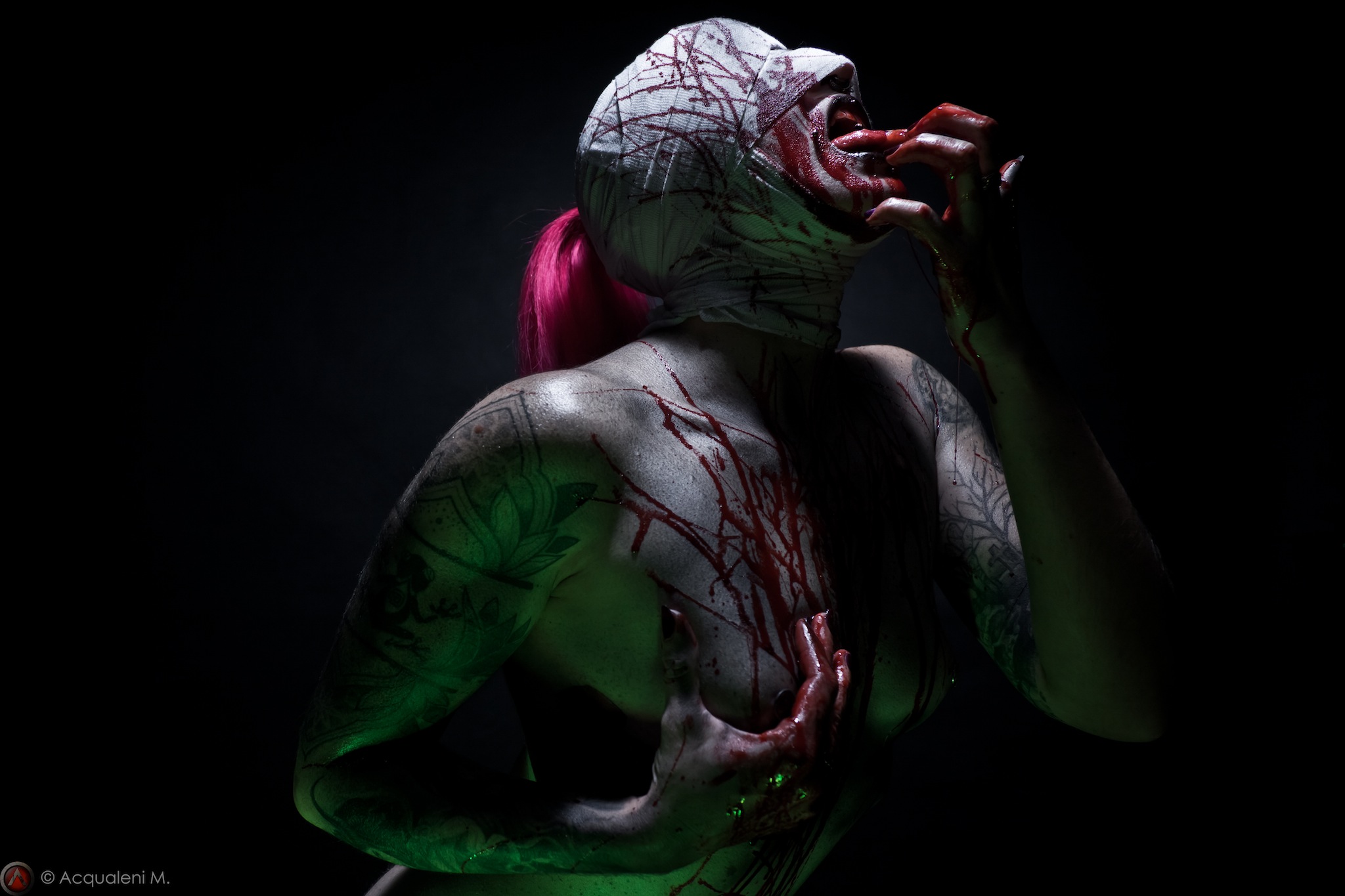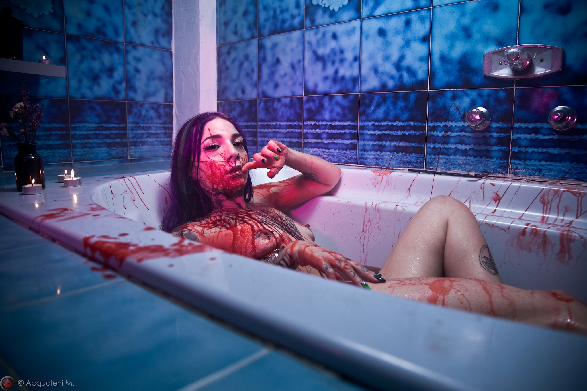 Over time, his work evolved into a darker and more personal universe shaped by fetish aesthetics, offbeat atmospheres, feminine beauty, and unusual visual tension. Using elements such as fake blood, ropes, masks, plastic textures, and abandoned or constructed settings, he creates images that move beyond convention and into something more immersive, strange, and deeply expressive.